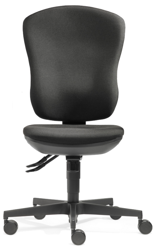 Universell einsetzbarer Schreibtischstuhl mit konturgeformten Bandscheibensitz und ergonomisch gepolsterter Rückenlehne